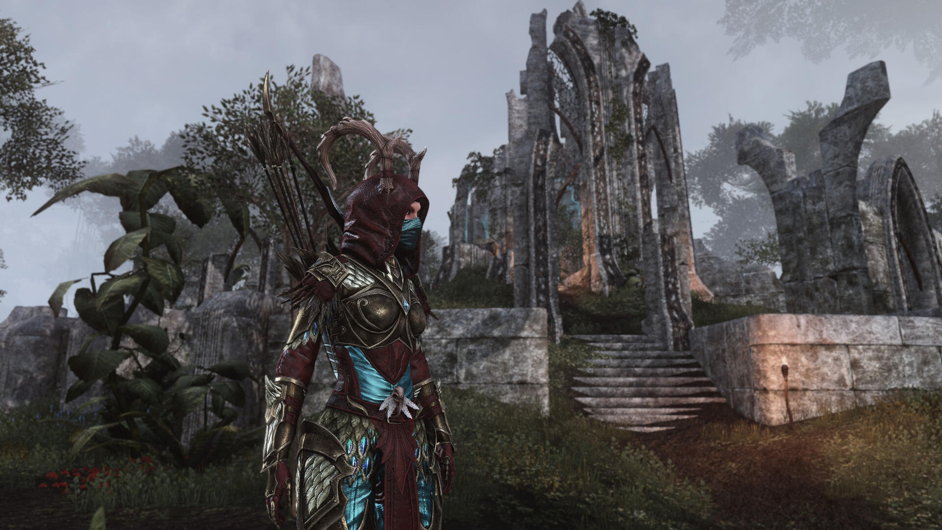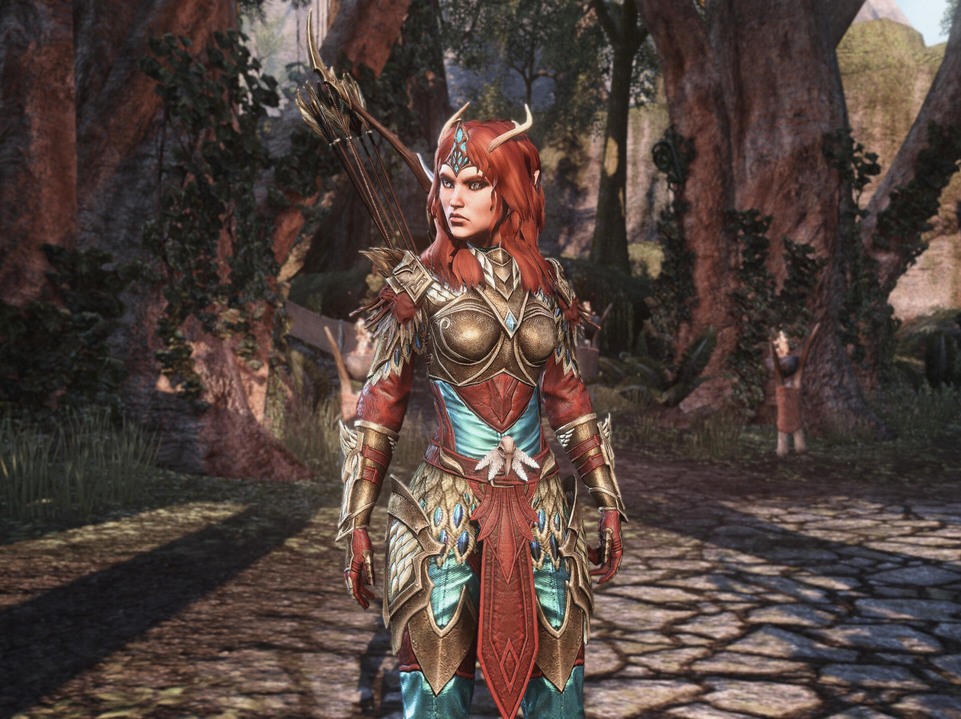 Ciranya is a tan-skinned, red-haired, crystal-eyed bosmer who stands 5 feet tall. She's highly athletic and toned on a short and narrow skeletal frame. She grows antlers out of her forehead which arc back over the top of her head. Her ears on longer than average and curve outwards from her head.